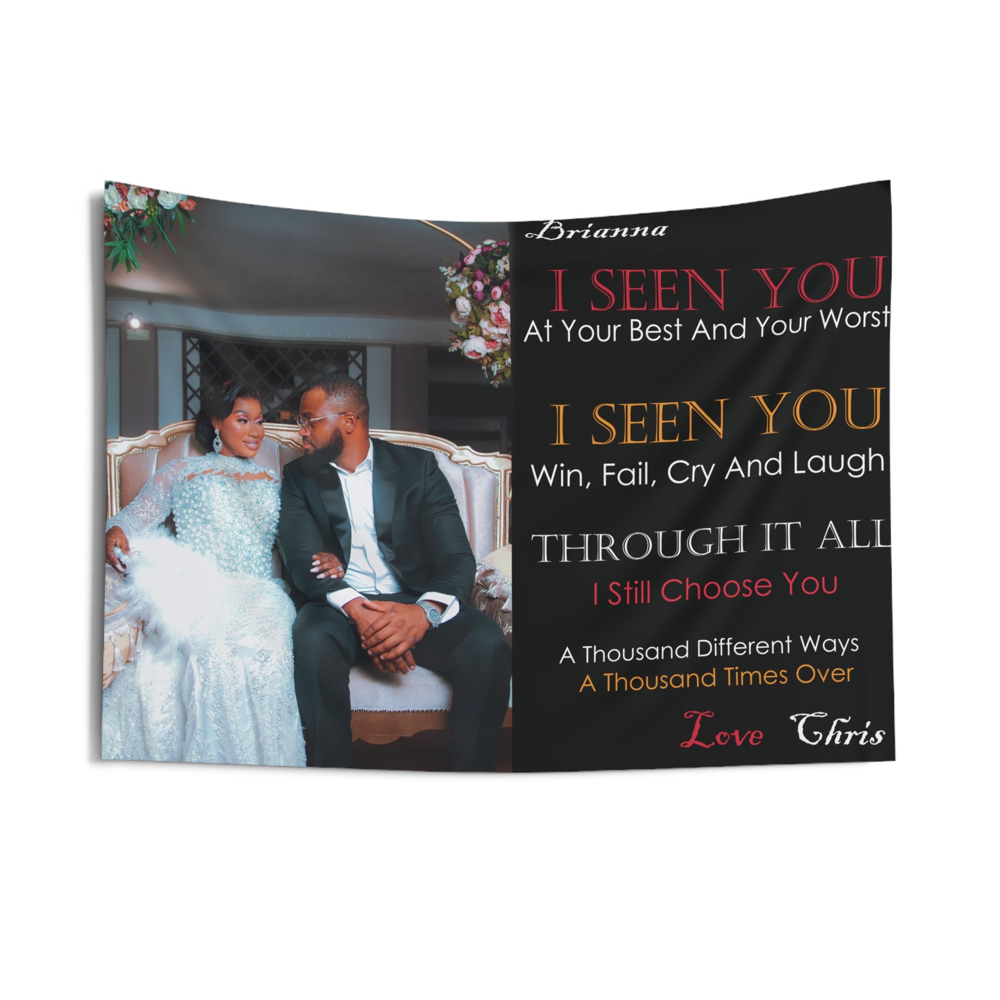 This personalized tapestry turns your favorite couple’s photo and names into a powerful love letter — a daily reminder that no matter what life brings, your love remains unshakable.